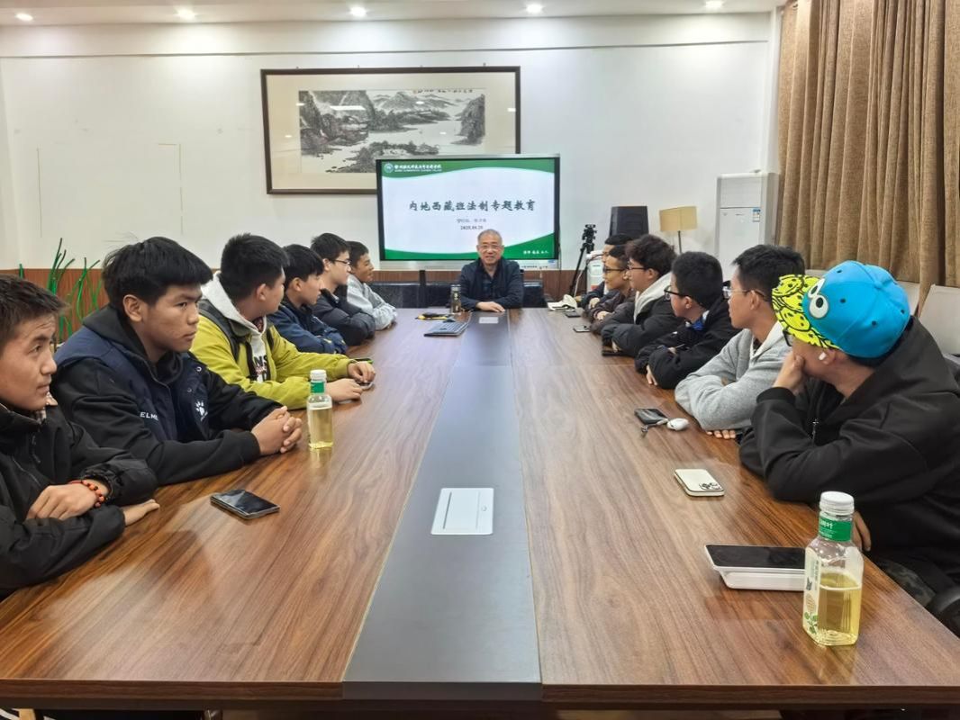 为进一步增强学生的法治观念和安全意识,构建和谐稳定校园,10月28日下午,我院邀请保卫处王辉老师在A103会议室为2025级西藏班全体男生举办了一场主题鲜明、内容丰富的法制教育讲座,管理老师卢振宇一同参加了此次活动。