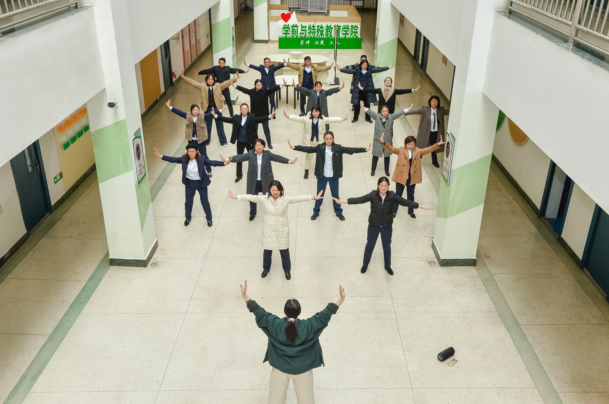 活动在悠扬的古乐声中拉开序幕。张雪老师带领老师们体验传统健身功法八段锦。伴随着舒缓的音乐,大家舒展筋骨,在一招一式中感受气血流通、身心合一的养生智慧。